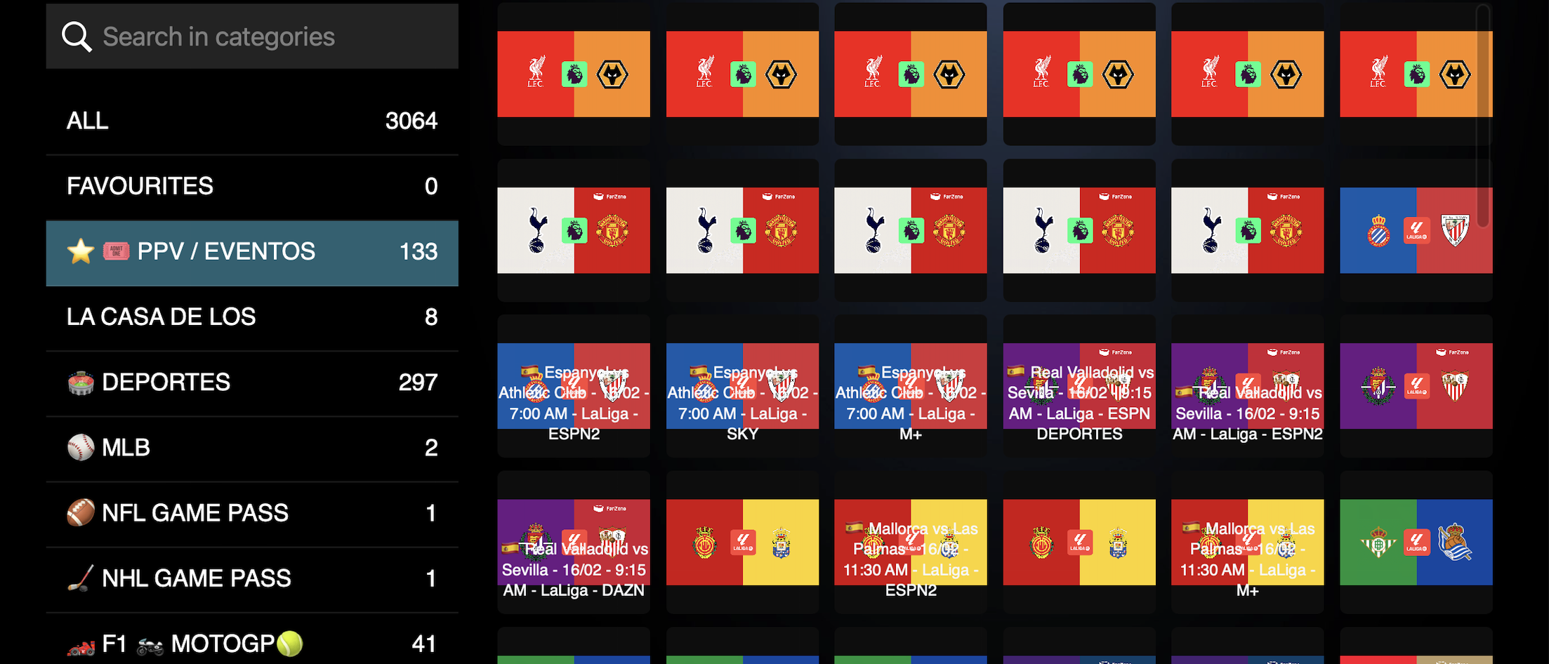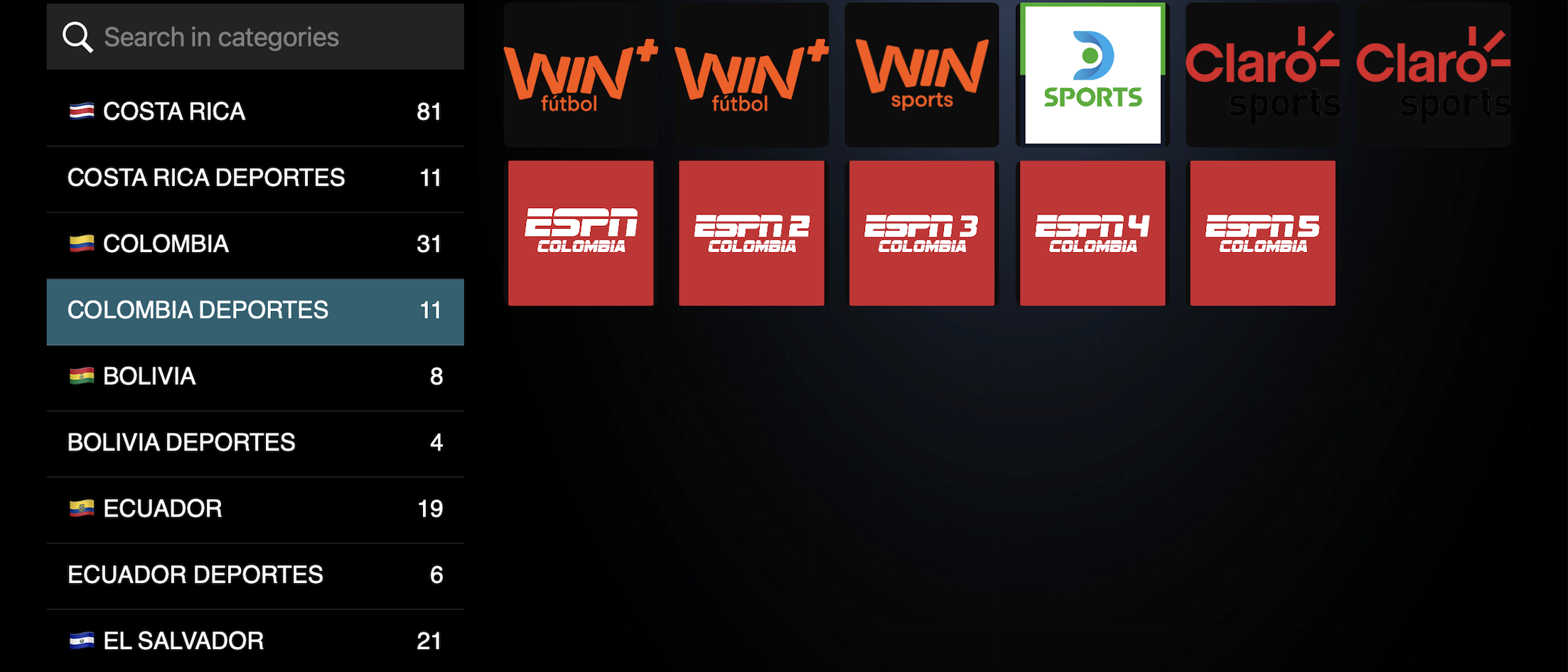 - La Liga, Premier League, Champions League, Bundesliga, Win Sport y demás competencias del Futbol mundial.